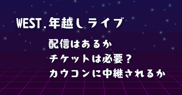 START社の人気グループ、WEST.が大晦日と元旦に京セラドーム大阪でライブ「WEST. SPECIAL LIVE『WESTA!』」を開催します! さらに、WEST.の単独カウントダウンコンサートとなる『WESTA!』の大晦日夜公演は、東京ドームのSTART社カウコンとの生中継が期待されています。 一方で、会場に行けないファンの皆さんからは『WESTA!』の生配信を熱望する声も!ちなみに、東京ドームのカウコン生配信がファミリークラブオンラインで行われるので、『WESTA!』も有料配信があるかもしれません。 そこで今回の記事では、WEST. ... -