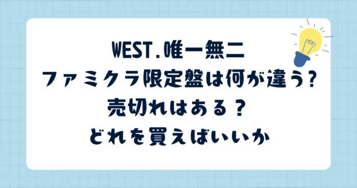 WEST.唯一無二ファミクラ限定盤は何が違う?特典や収録曲・売切れた場合は