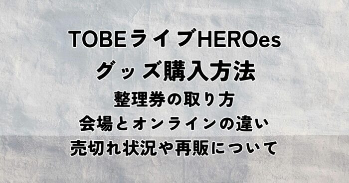 今回で3回めとなるTOBE合同ライブ「to HEROes 〜TOBE 3rd Super Live〜」が、2026年4月20〜22日にバンテリンドームナゴヤ、5月16〜17日に北海道大和ハウスプレミストドームで開催されます。 「TOBEライブHEROes2026のグッズって、いつ・どこで買えるの?」「整理券は必要?」「売り切れたら再販はある?」そんな疑問を持っている方は、ぜひこの記事を最後までチェックしてください。 大型ライブのためオフィシャルグッズは毎回争奪戦となり、事前準備をしているかどうかで「買える・買えない」が大きく分かれます... -
