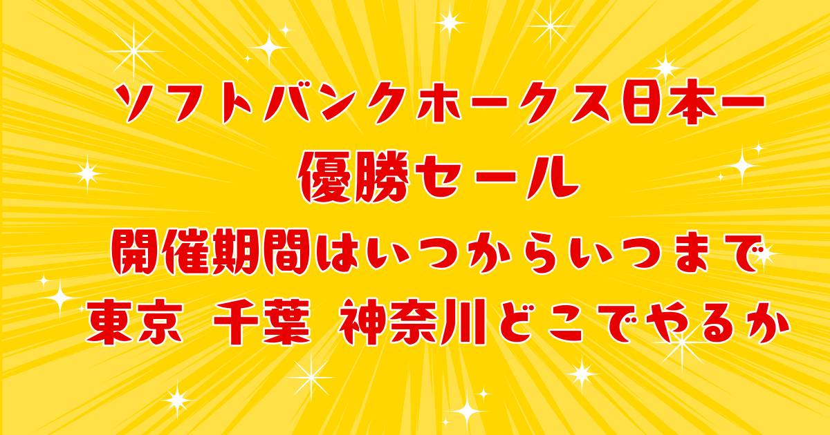 この記事では東京、千葉、神奈川で福岡ソフトバンクの優勝セールが開催される店舗はどこなのか、セール期間はいつからいつまでなのかリサーチしたので東京近郊の方はぜひチェックして見てください。